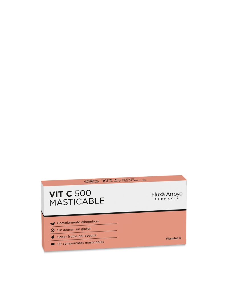 Complemento alimenticio en comprimidos masticables a base de vitamina C (500mg por comprimido). Sin azúcar.